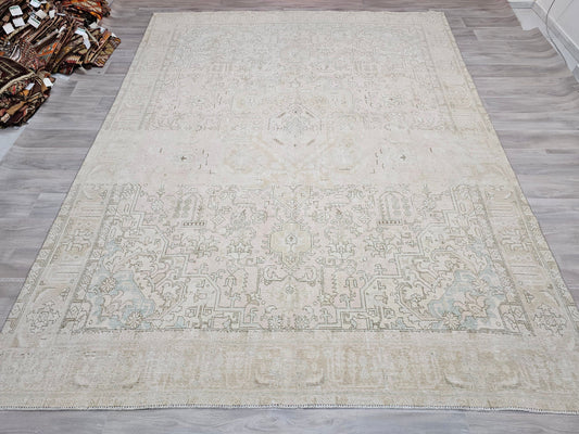 9x12 Neutral Area Rug/ Oversize Vintage Carpet for Livingroom and Bedroom Handmade //9.50x12.15 feet