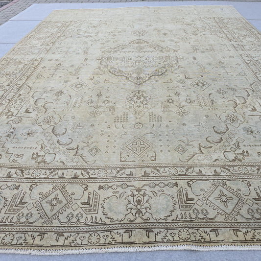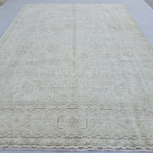 9x12 Vintage Handwoven Neutral Beige Large Area Rug – 9.40x12.65 ft Turkish Bohemian Carpet