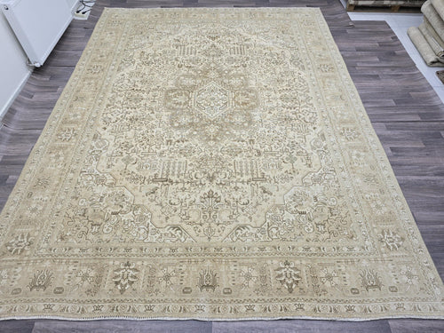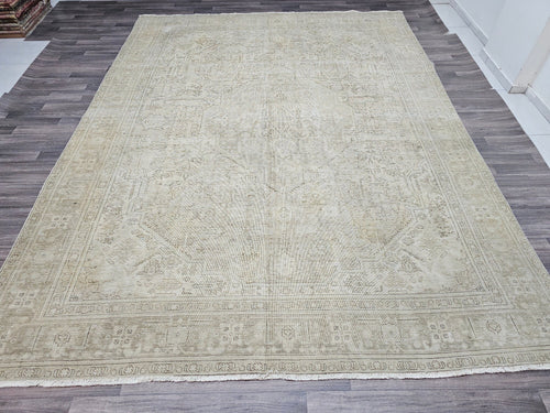 9x12 Vintage Handwoven Neutral Beige Large Area Rug – 9.40x12.65 ft Turkish Bohemian Carpet -