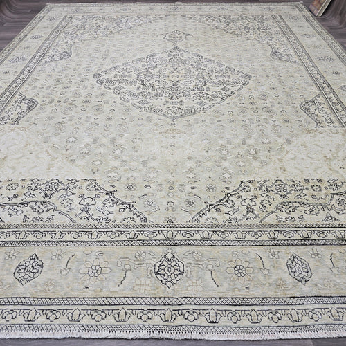 Handmade 9x12 Oushak Rug Neutral : Vintage Turkish Wool Carpet (9x12 ft) -