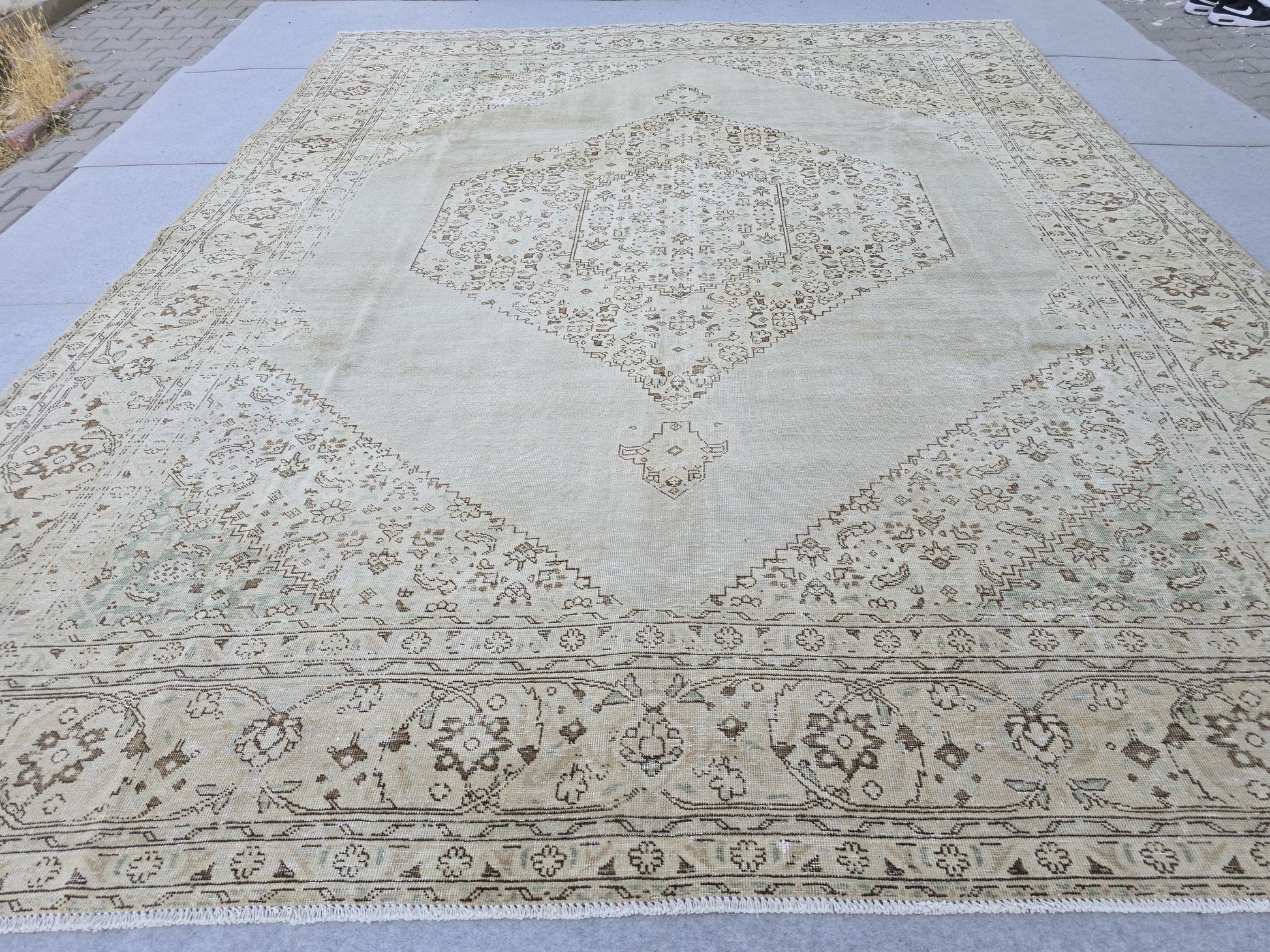 10x13 Hand-Knotted Oushak Rug: Vintage Turkish Wool Carpet