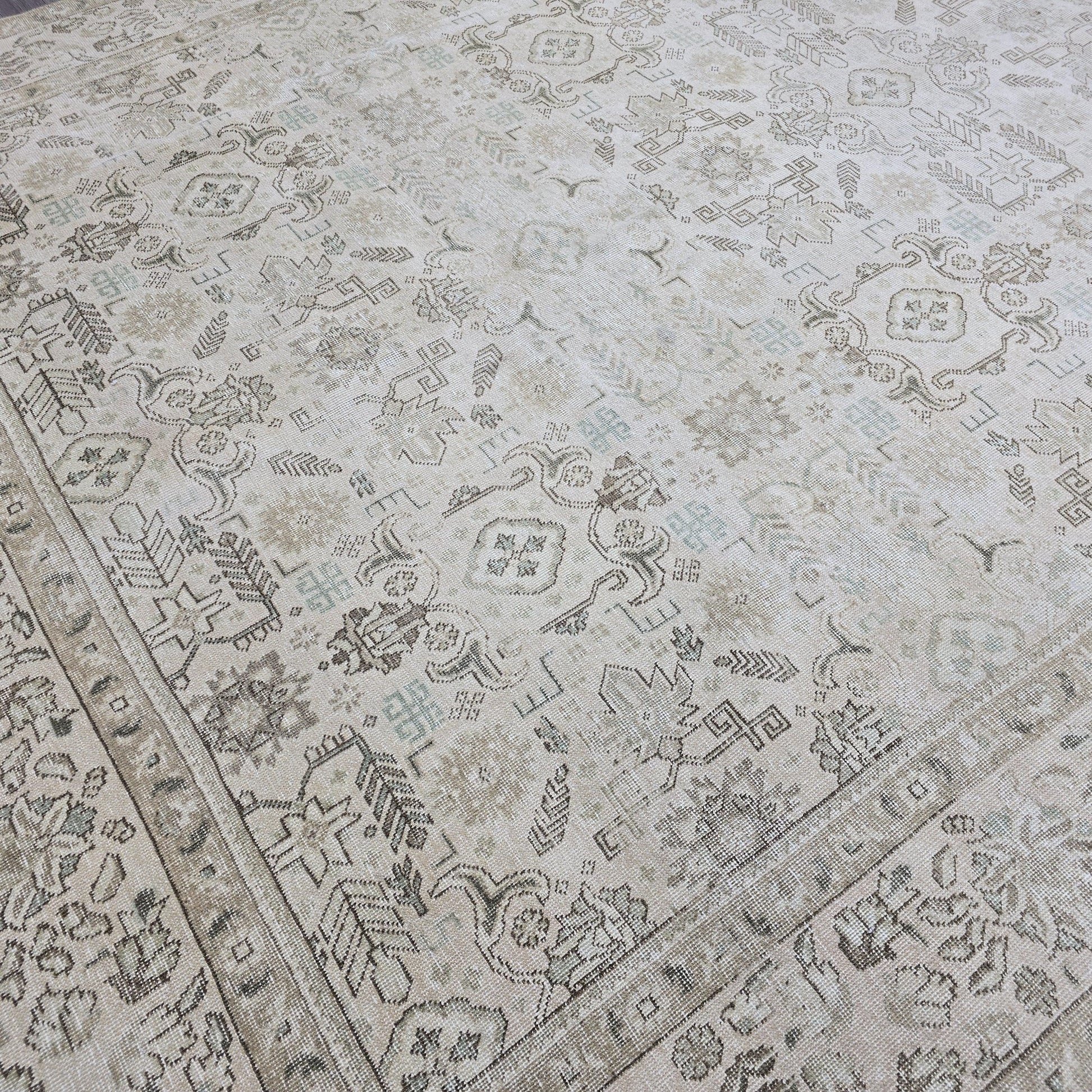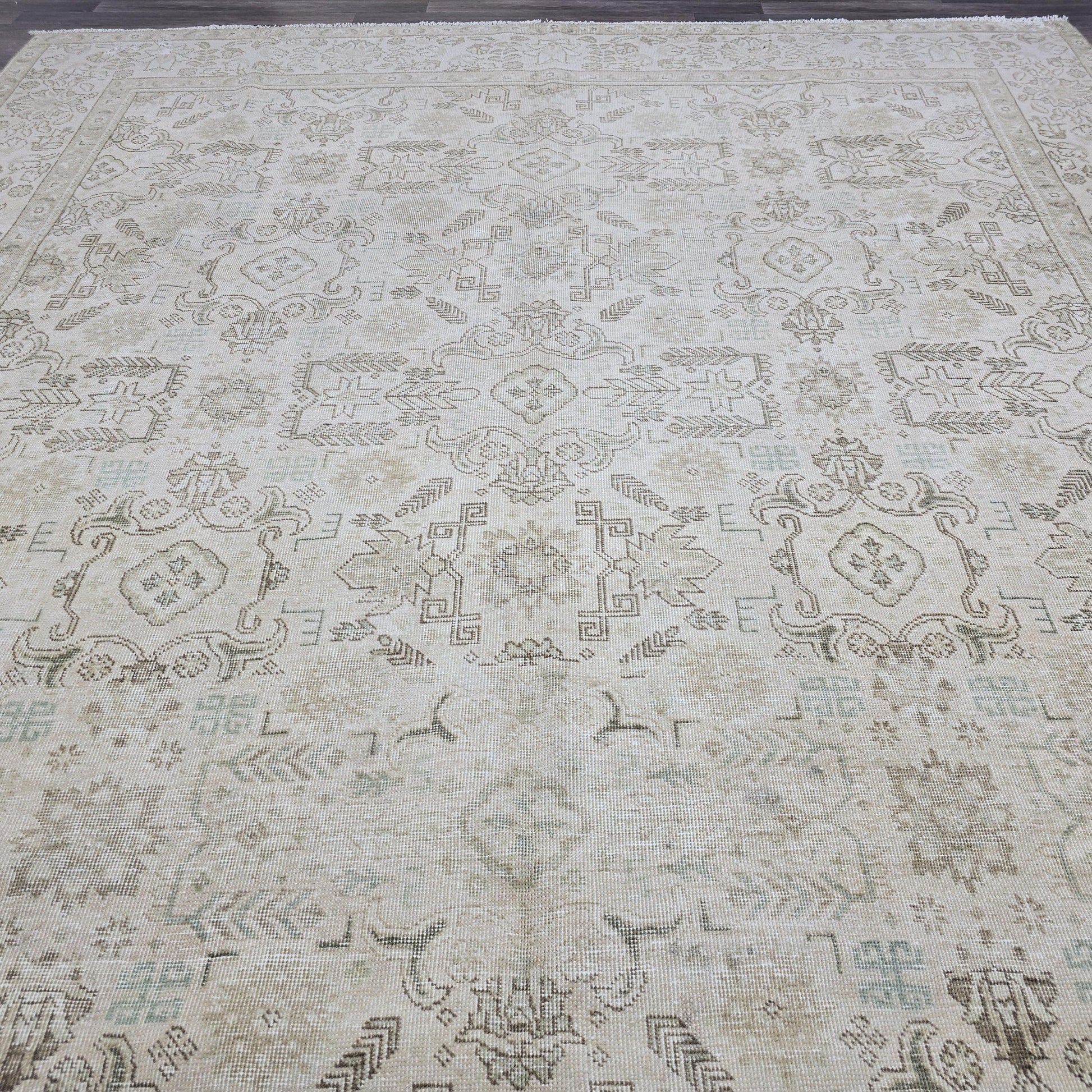This is an Neutral Vintage Rug. Renowned for their rich colors and interesting designs, Turkish rugs are made with all-natural wools, silk, and vegetable dyes, rather than synthetic materials. ... Because of their painstaking craftsmanship, Turkish rugs are also highly regarded for their quality and durability.