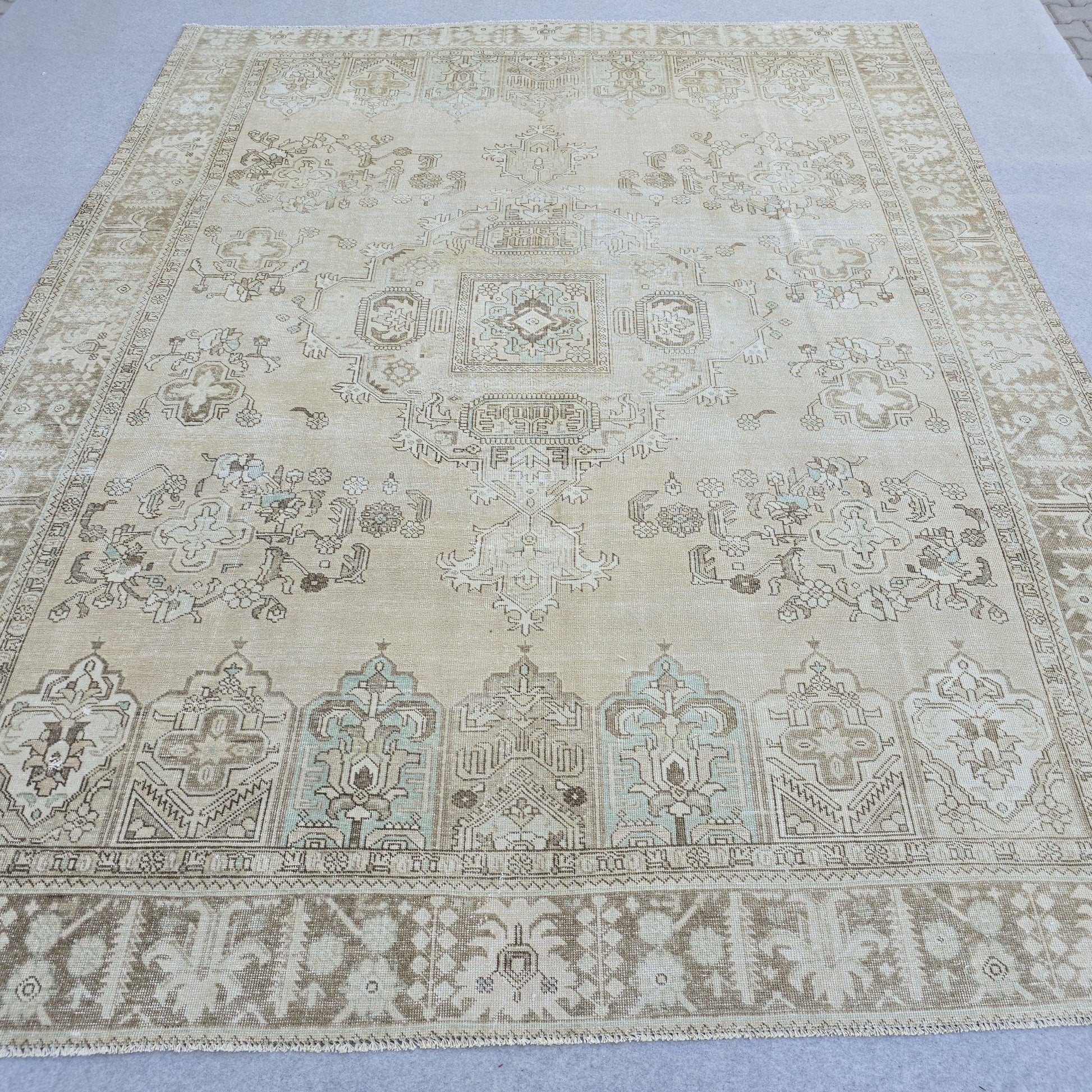 9x12 Neutral Vintage Turkish Oushak Area rug /9.50x11.80 feet