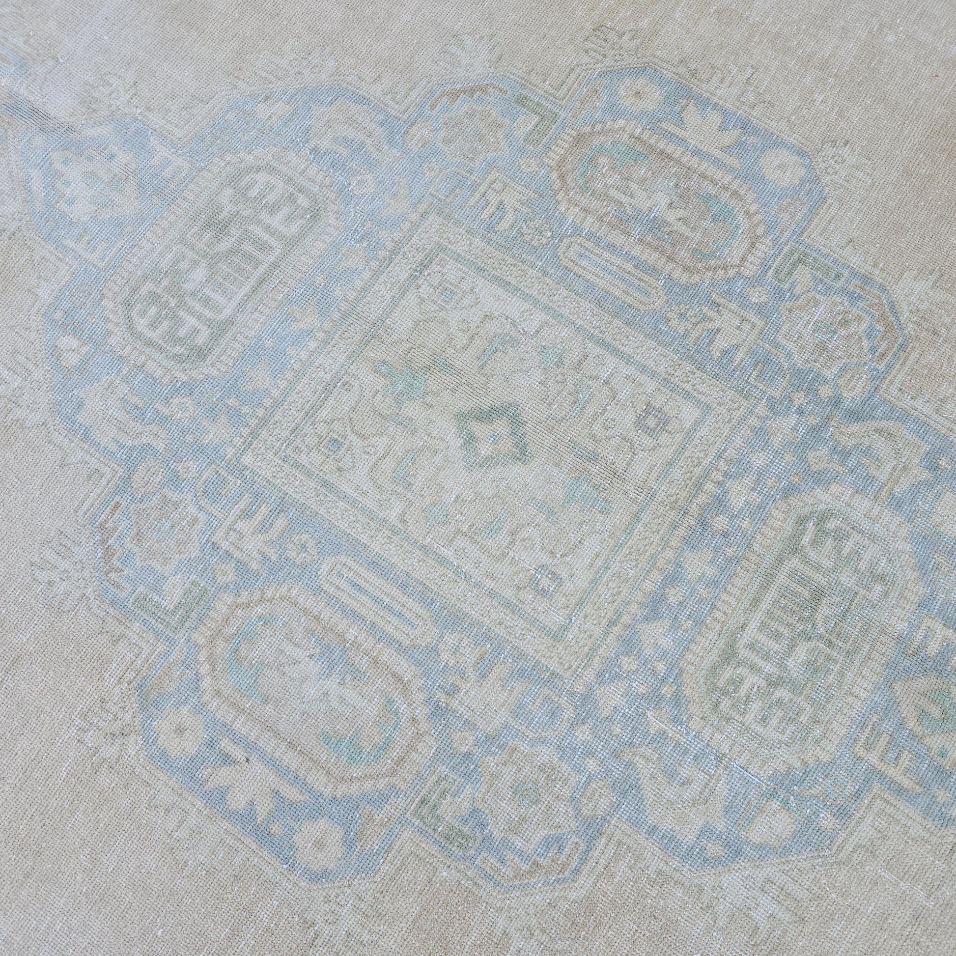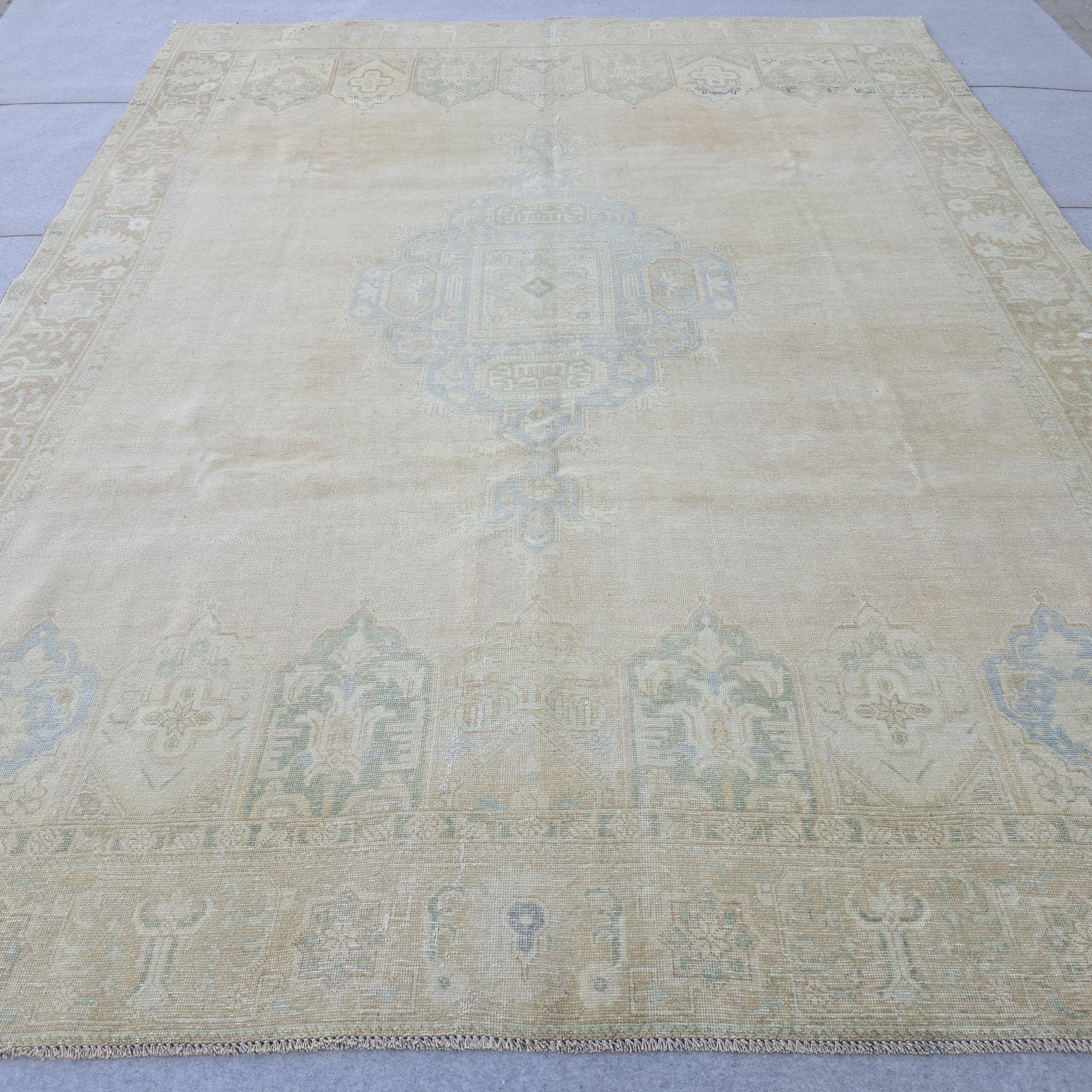 9x12 Turkish Rug Muted Blue Cream Beige Persian Area Rug Bedroom Scandinavian Decor