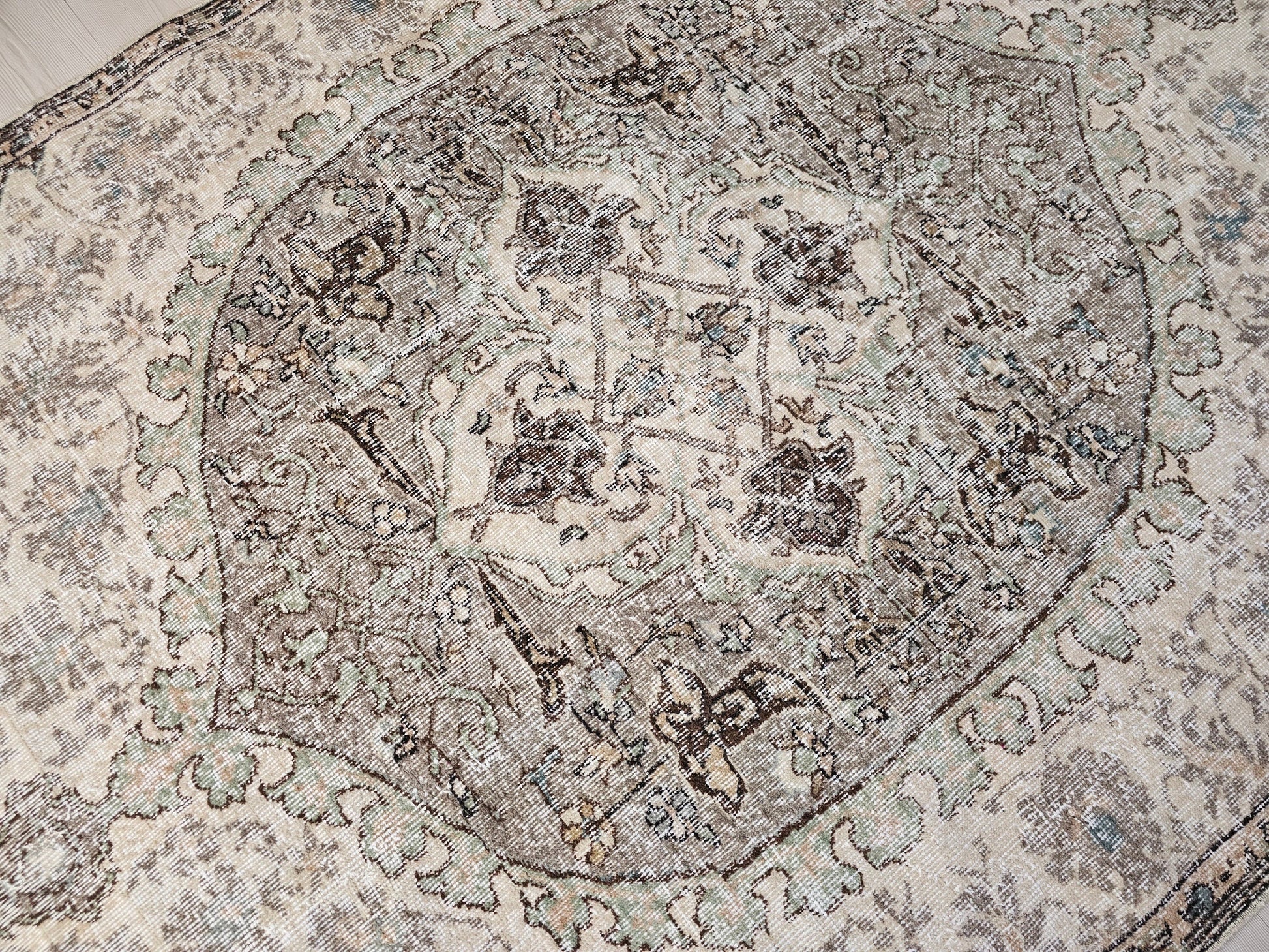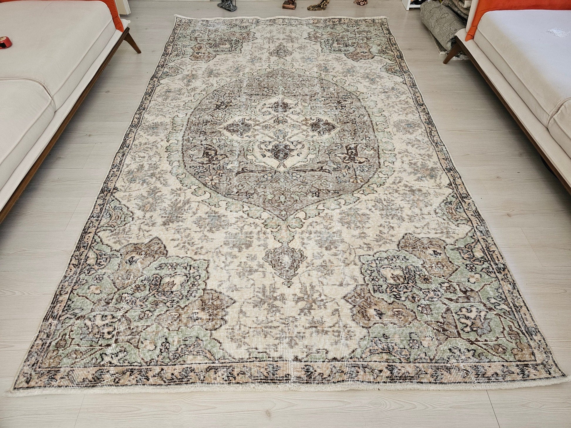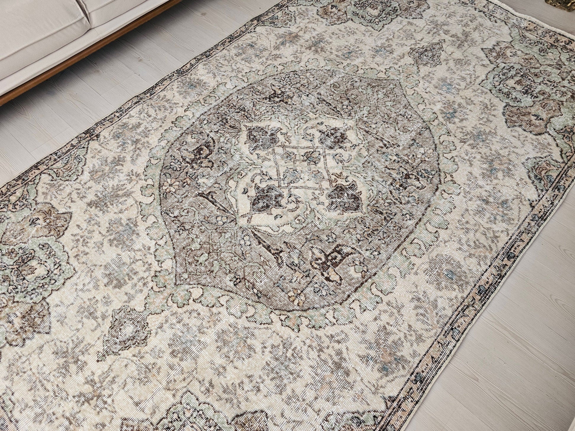 This is a kind of Vintage Turkish Oushak Area Rug. Oushak runners and rugs are named after the city of Usak, Turkey.