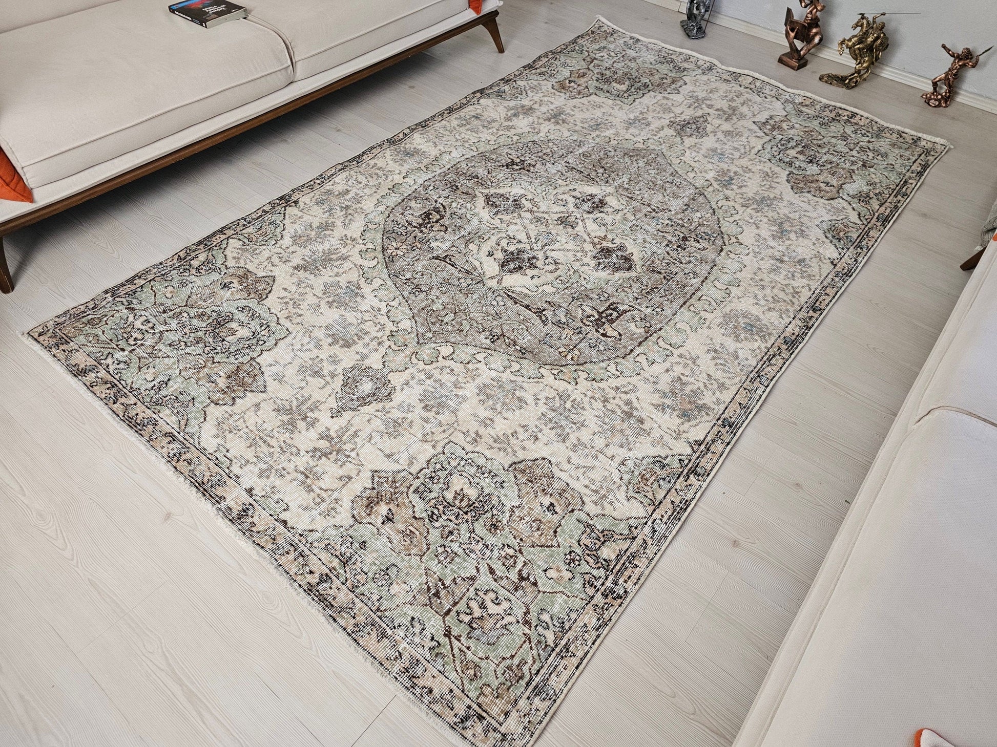Hand-Knotted Wool Oushak Rug: 6x9 Vintage Turkish Area Rug