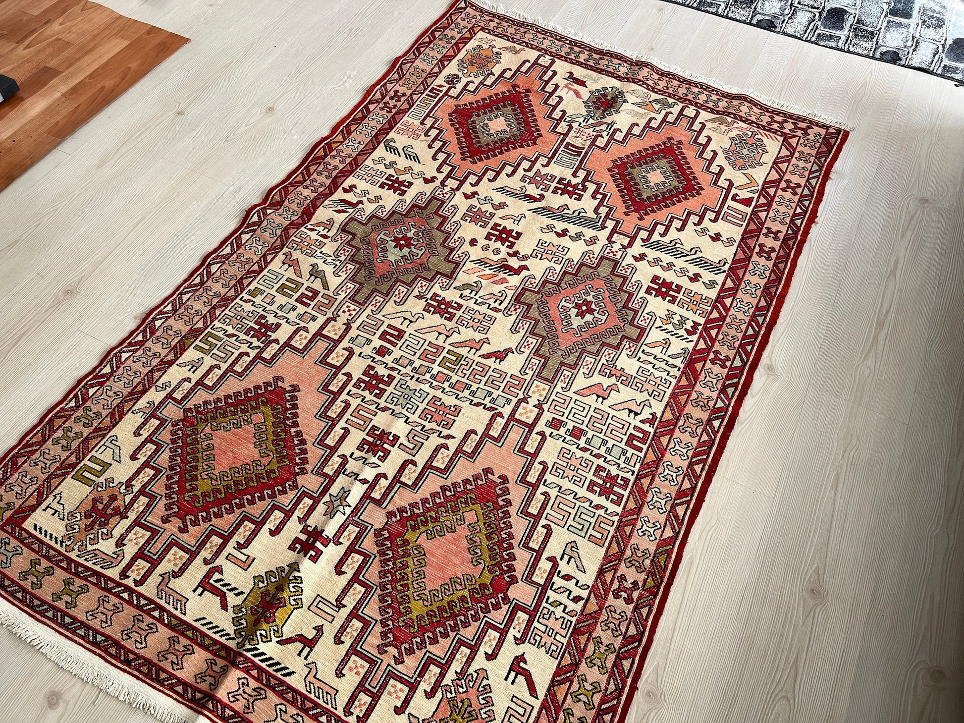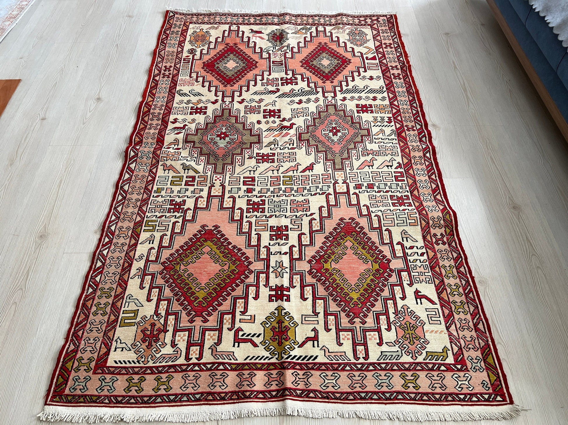 4x6 Soumak rug Silk - Hand Woven Decorative Rug - Accent Rug - Antolian Rug - Animal Print Rug - Pink and Cream Rug/117x190 cm - 3.85x6.25 feet