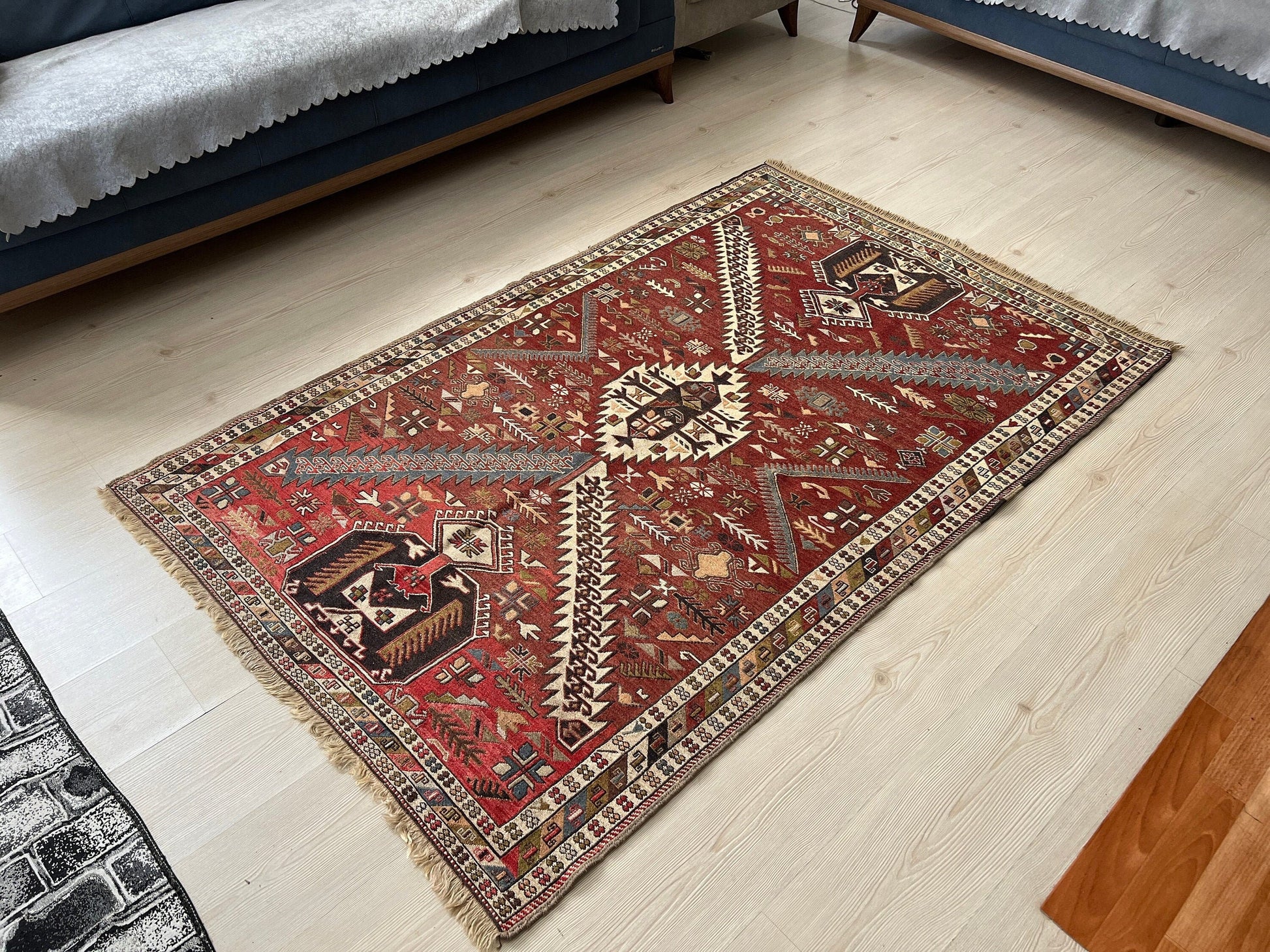 These rugs were traditionally used as floor coverings, but today they are often used as decorative wall hangings or as accent pieces in modern interiors. They are prized for their unique beauty and cultural significance and are considered valuable works of art by collectors and enthusiasts of traditional textiles.