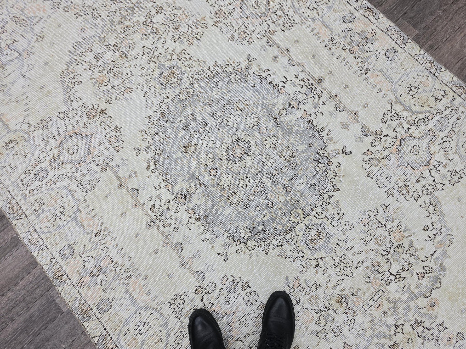 💫 This vintage distressed rug brings timeless elegance with its sophisticated medallion design and neutral palette, perfect for both modern and traditional interiors.