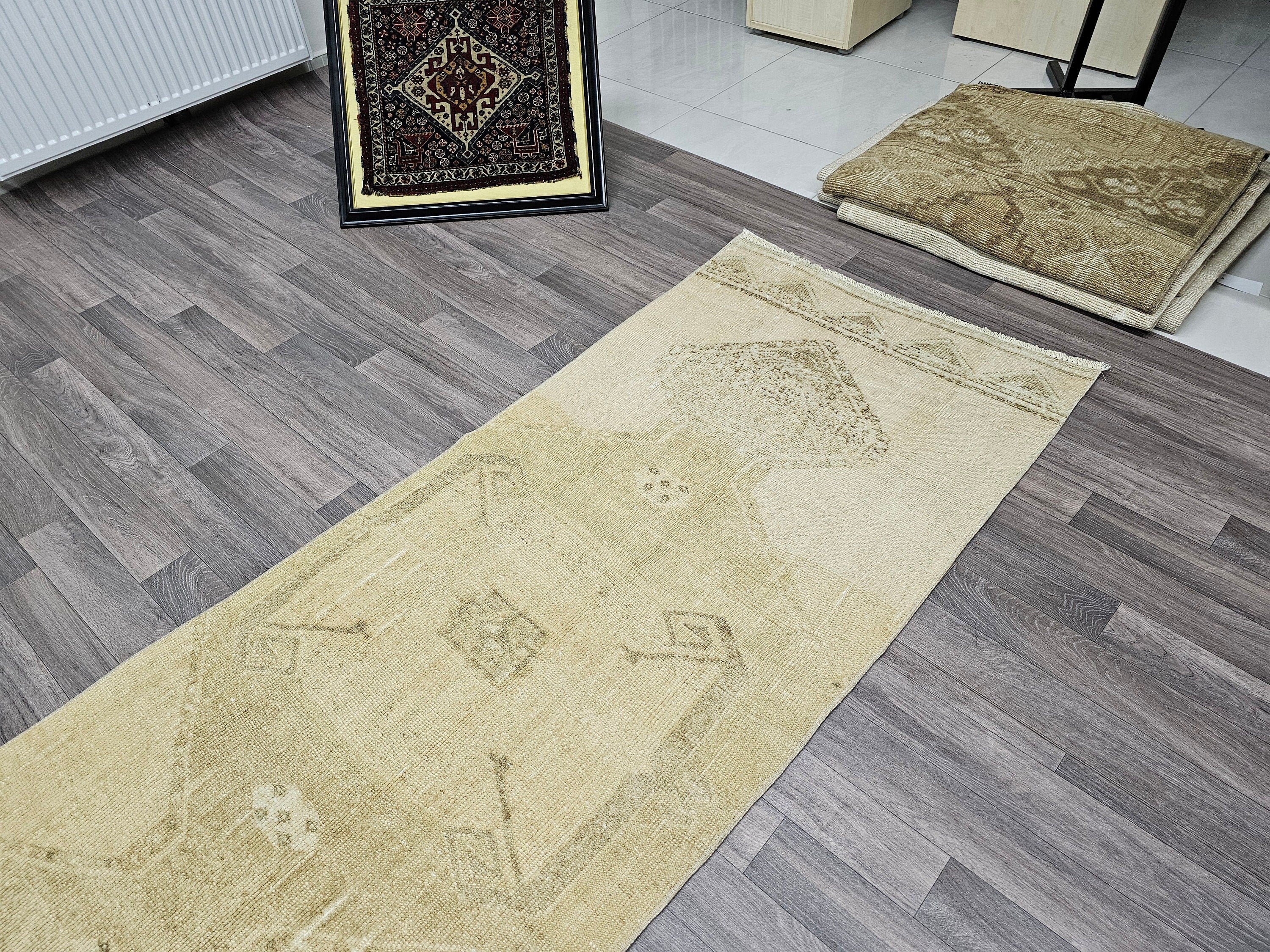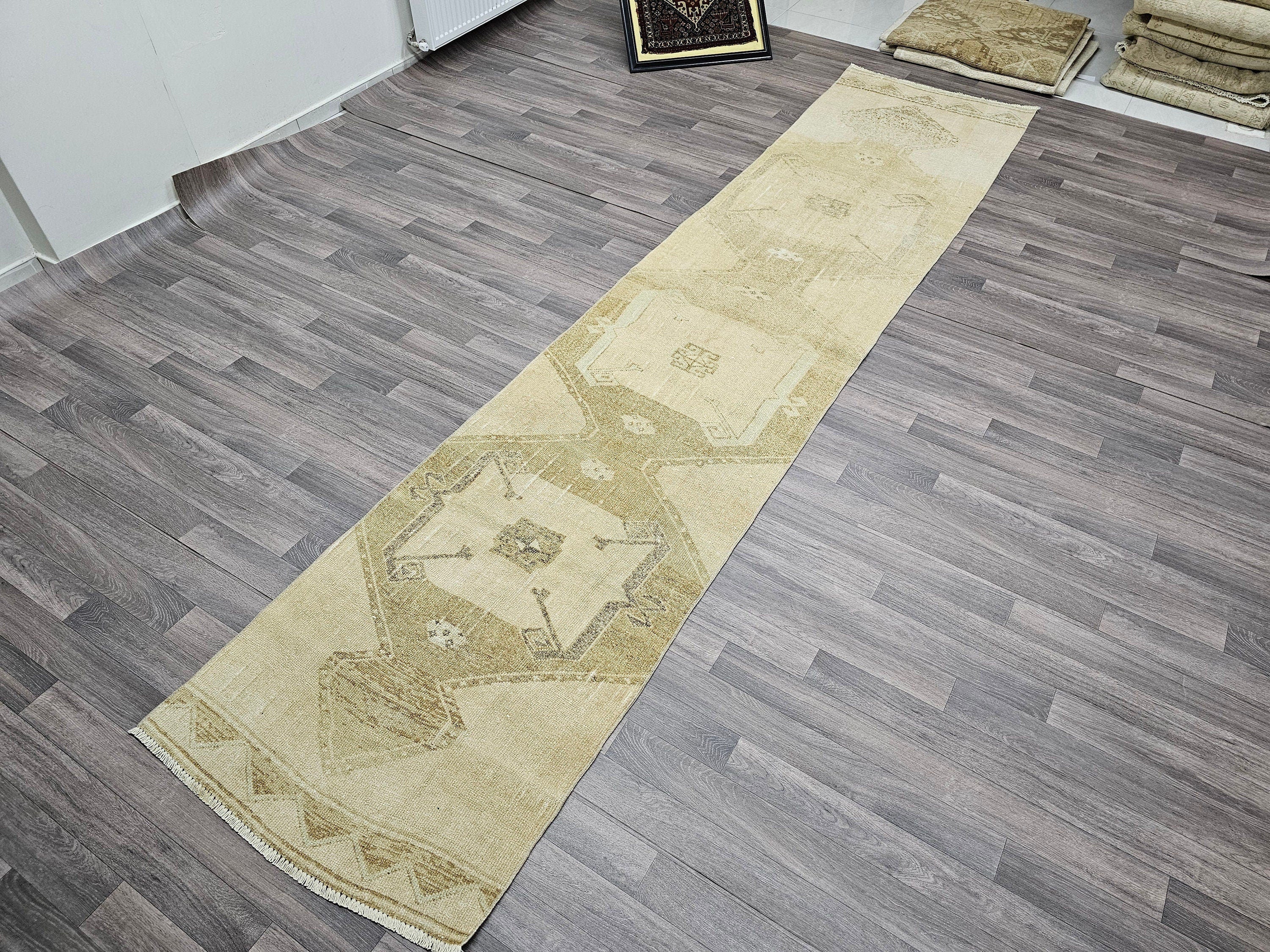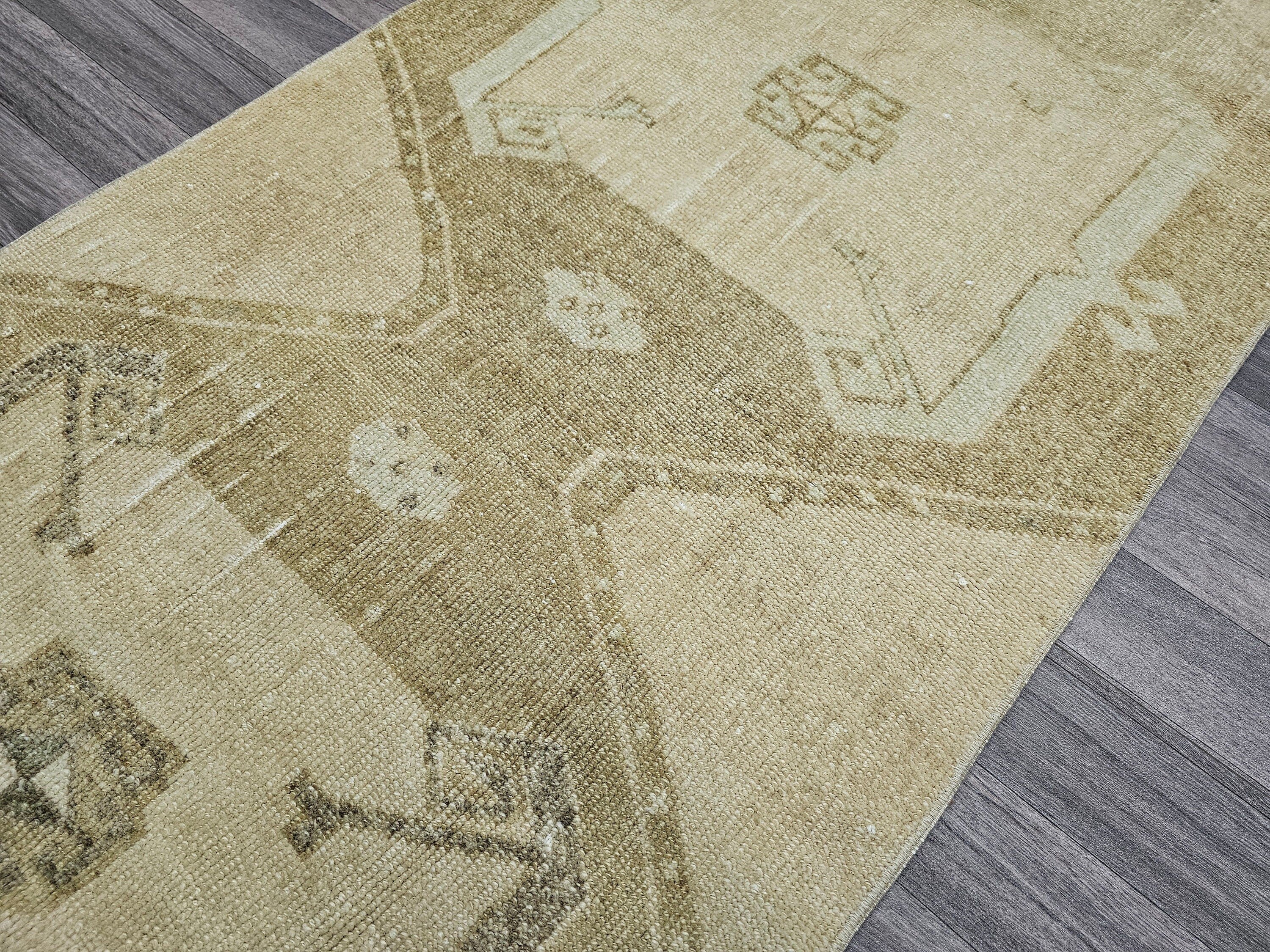 Vintage Oushak Wool Runner: Hand-Knotted Turkish Rug (2.95x13.35 ft)