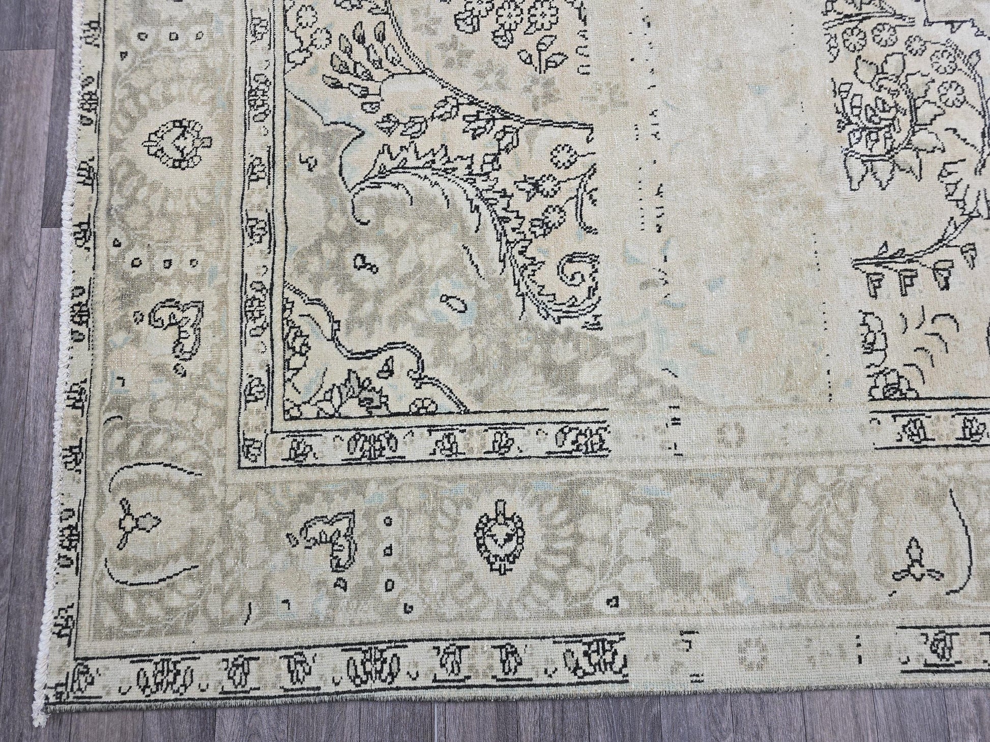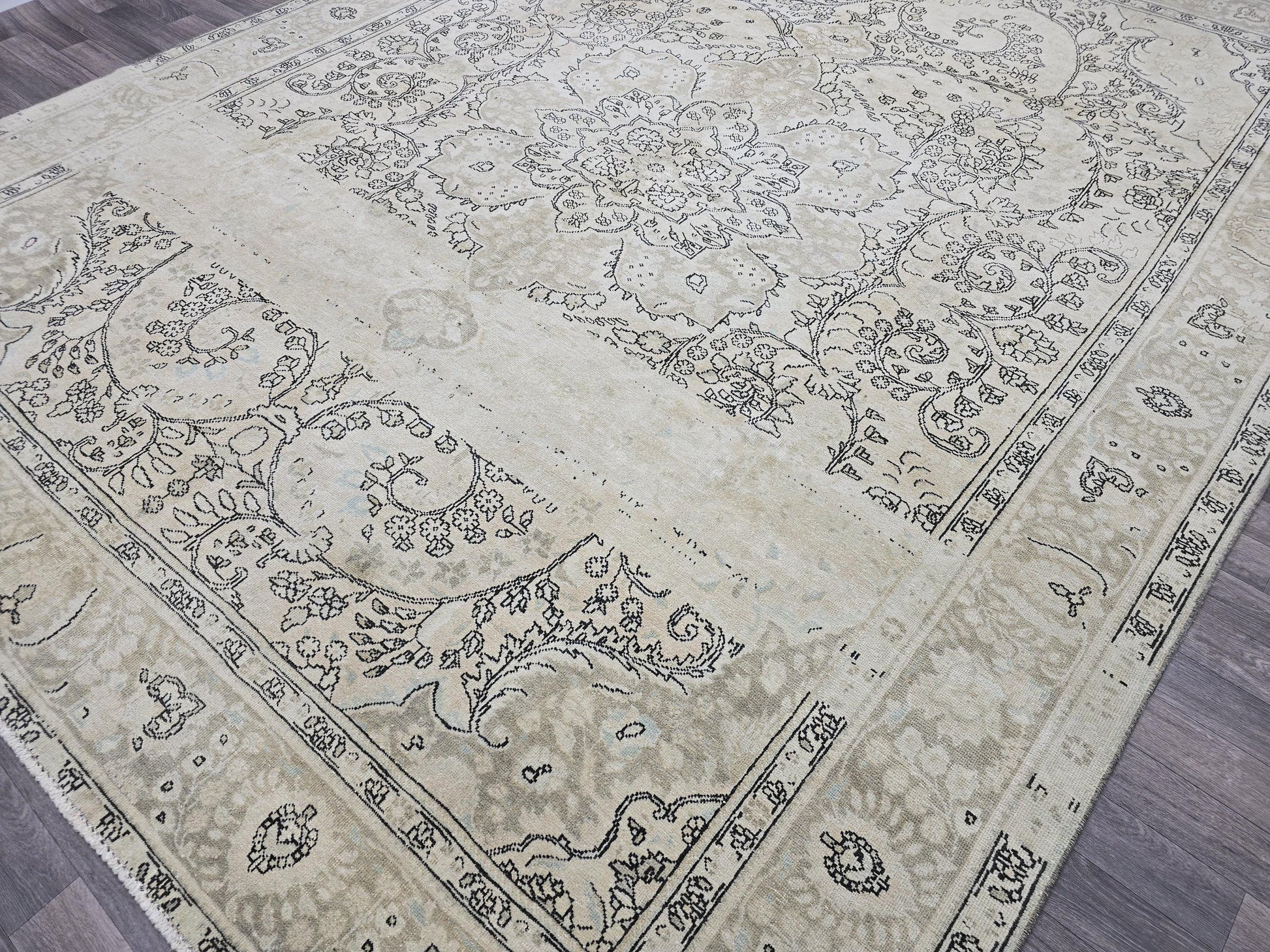 Vintage Turkish Oushak Rug 10x12: Handwoven Wool Beige Carpet