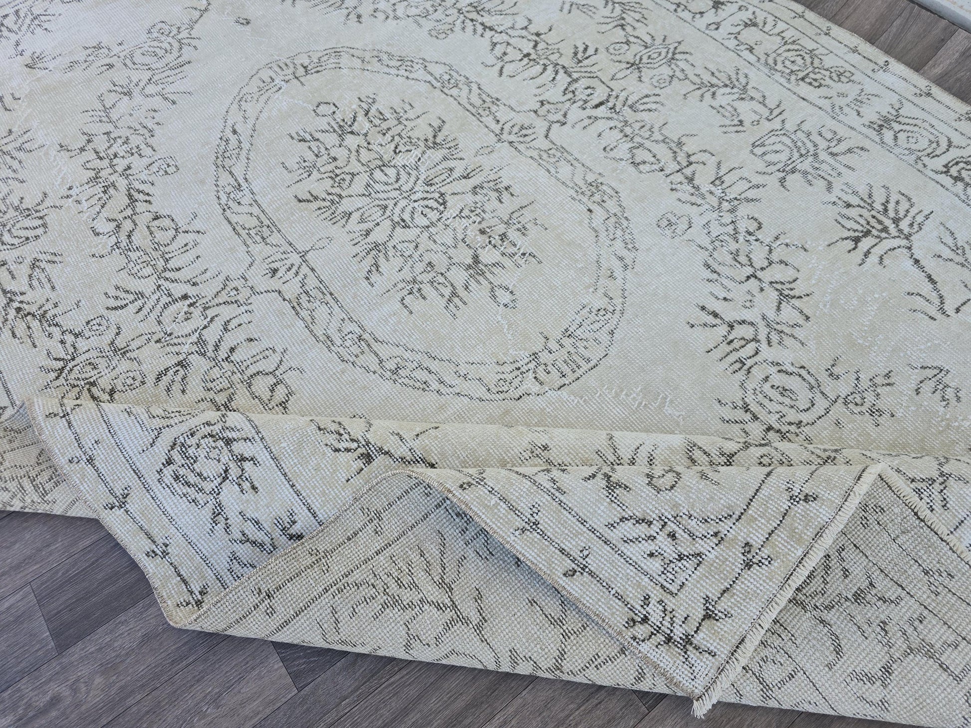 Vintage Turkish Oushak Rug: Hand-Knotted Wool Area Rug (5.7x9.40 feet)