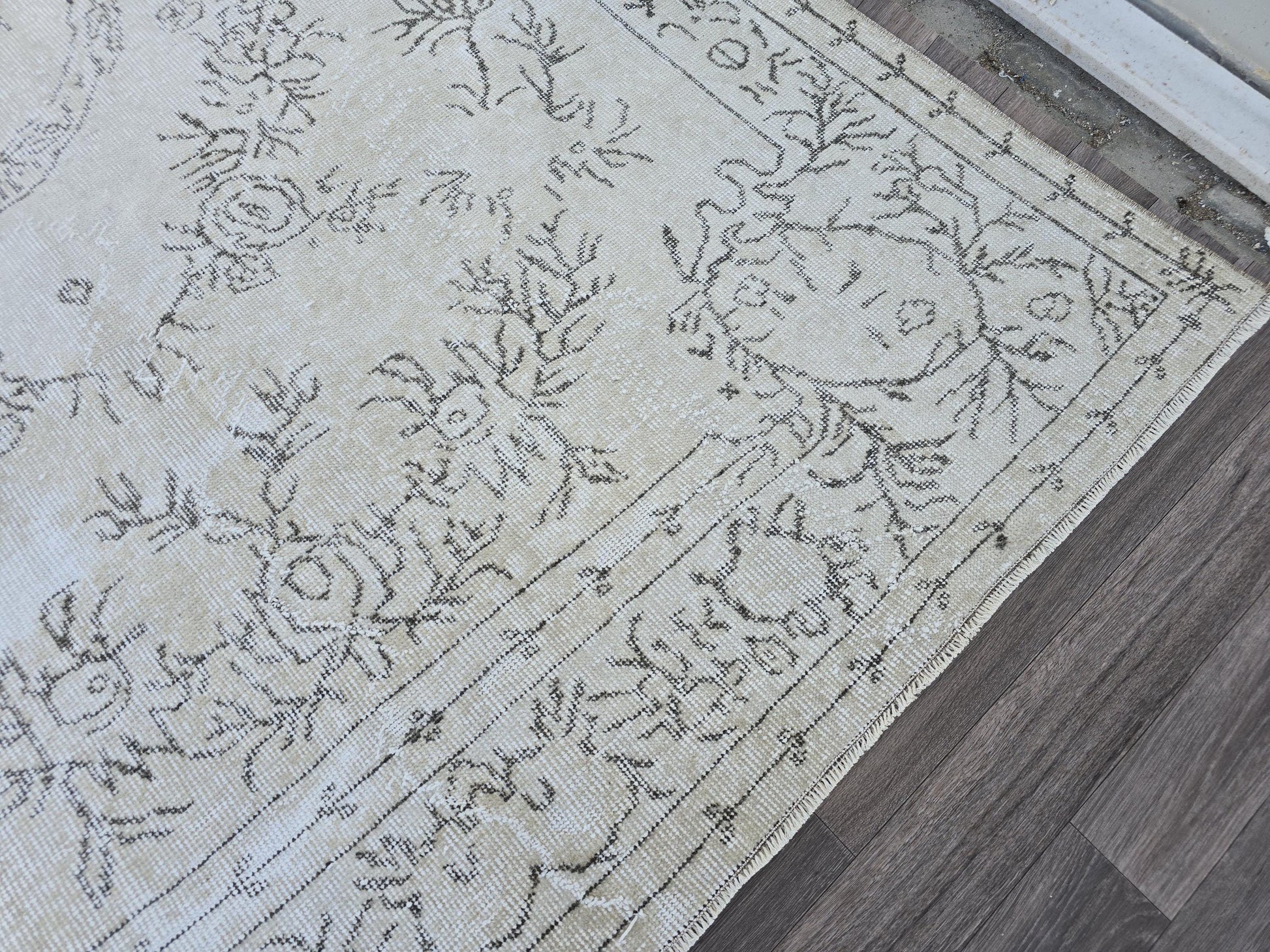 Add a touch of timeless elegance to your bedroom or small office with this beautiful 6x9 Turkish Oushak rug. Hand-knotted with premium wool, this vintage area rug brings warmth, style, and high-quality craftsmanship to any space, making it a perfect choice for a cozy atmosphere.